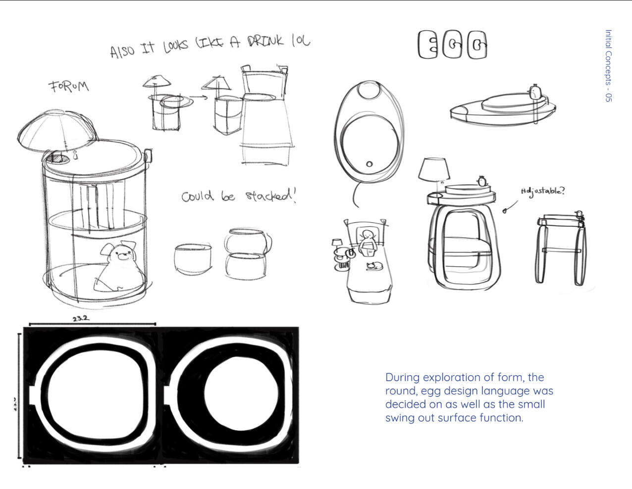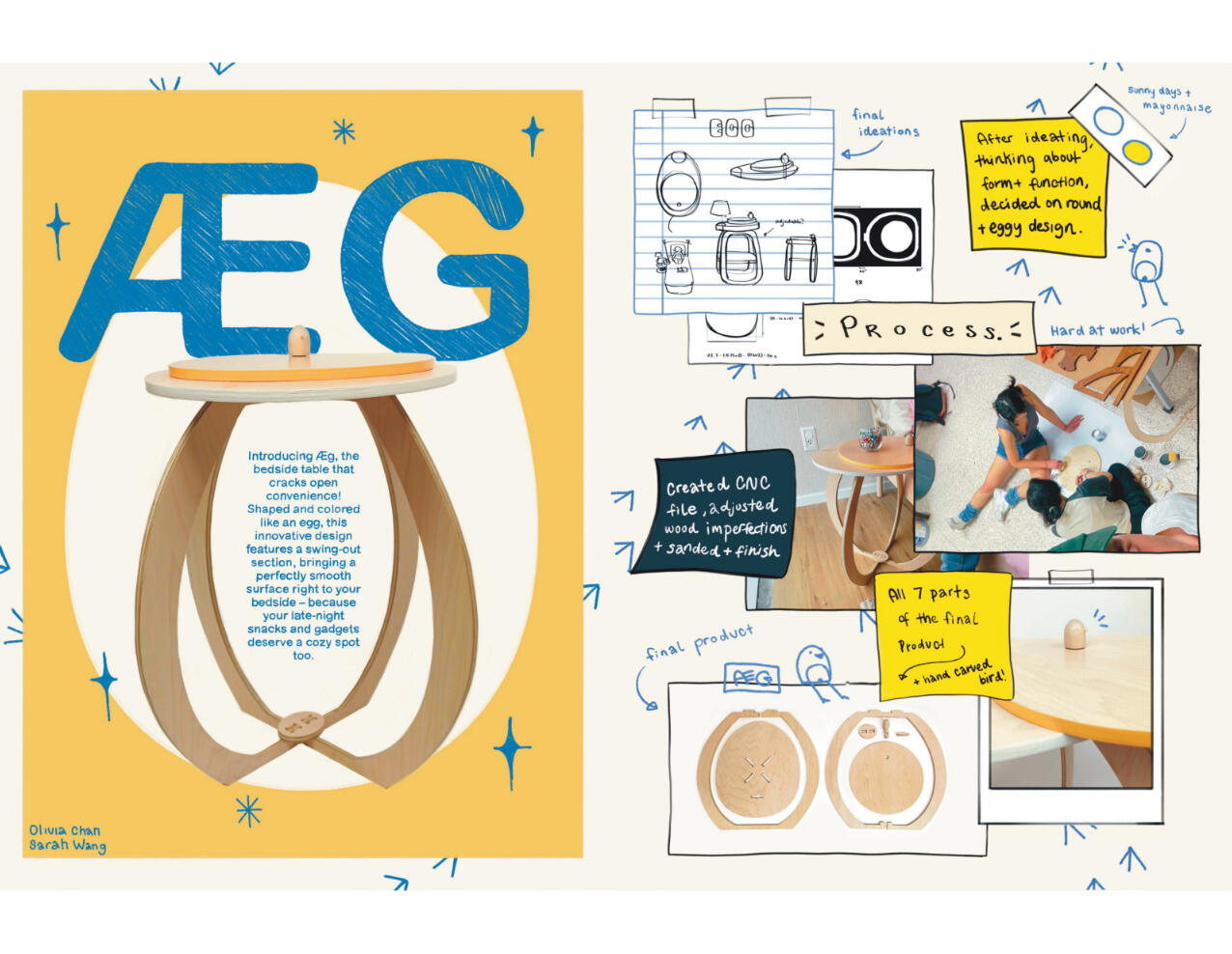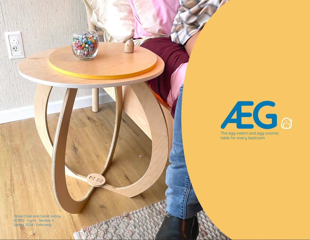 AEg is the bedside table that cracks open convenience! Shaped and colored like a perfect soft boiled egg, this innovative design features a swing-out section, bringing a perfectly smooth surface right to your bedside- because your late-night snacks and gadgets deserve a cozy spot too.