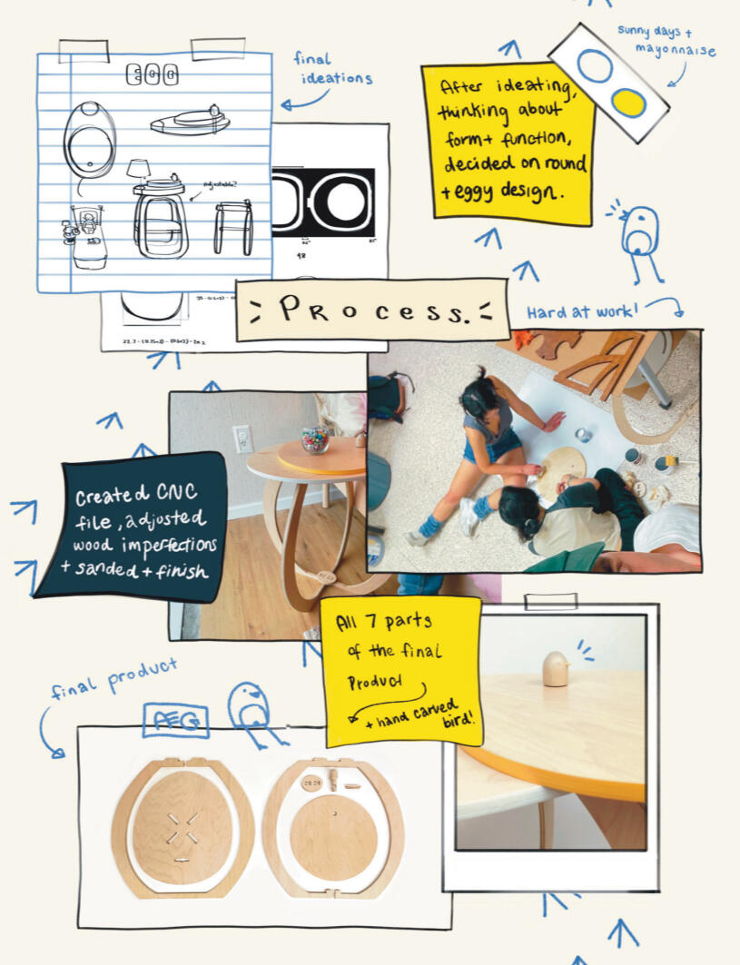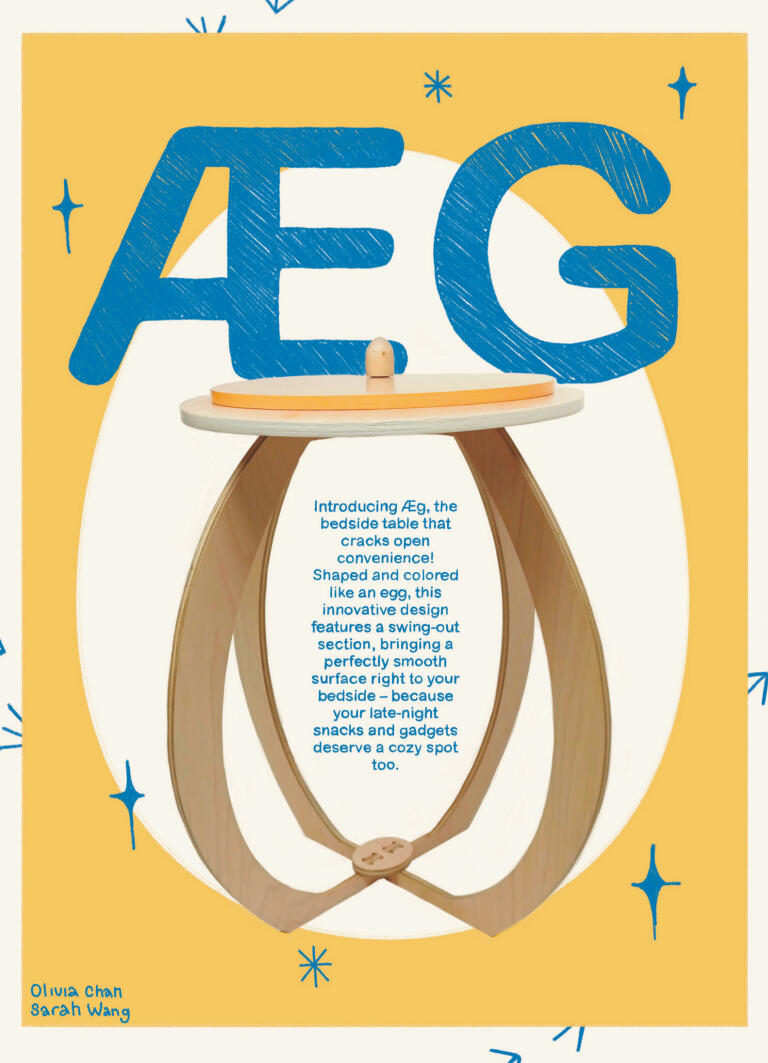 AEg is the bedside table that cracks open convenience! Shaped and colored like a perfect soft boiled egg, this innovative design features a swing-out section, bringing a perfectly smooth surface right to your bedside- because your late-night snacks and gadgets deserve a cozy spot too.